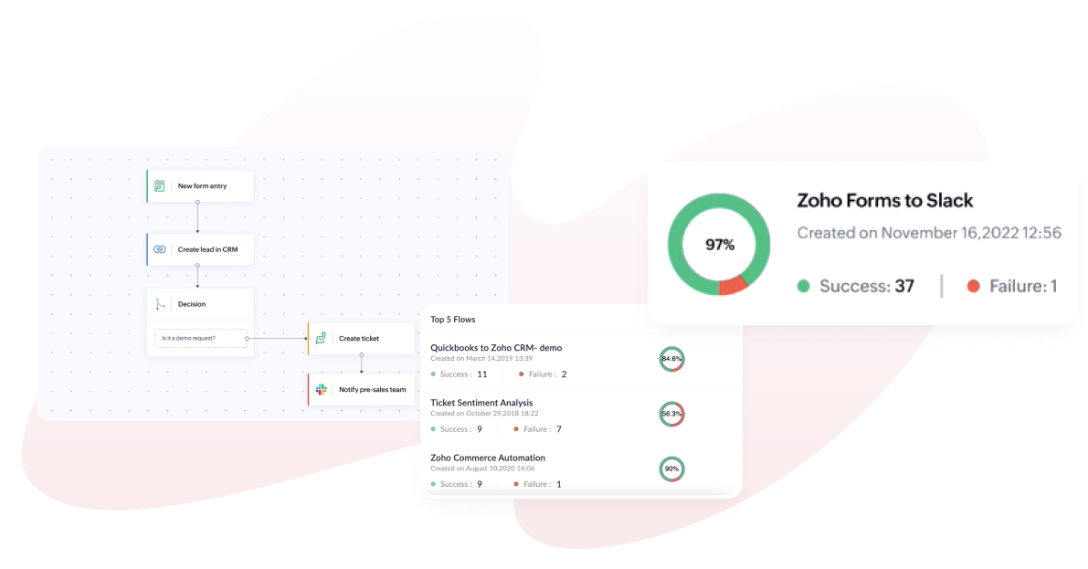 Design, automate, and connect your Zoho and third-party apps with seamless integration workflows.