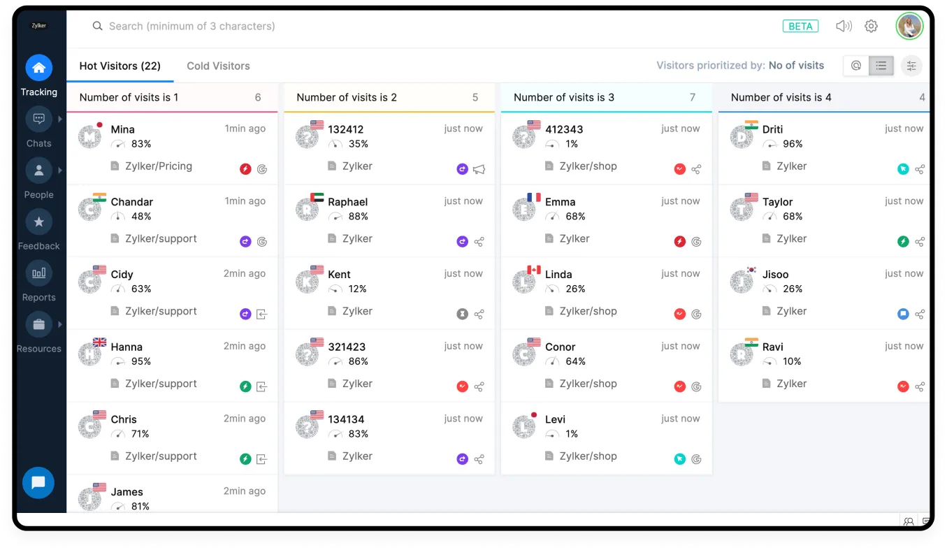 Zoho SalesIQ helps businesses engage website visitors in real time through live chat, chatbots, and visitor tracking.